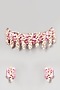 Featuring a gold finish choker necklace studded with shell pearls, set in mixed metal. It is paired with a matching pair of earrings, a ring, and a bracelet.