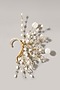 Featuring a gold finish ear cuff studded with metal wire holding silver crystal beads, pearls, and stones, set in mixed metal.