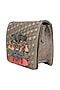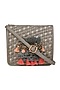 Featuring a grey mini crossbody bag in faux leather base with leatherette and brooch detailing. It has a cane underlining and a long detachable belt.