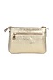 Featuring a silver sling bag in leatherette and cane base with sequins and coin lace embellishments. It has a synthetic underlining and three sections.