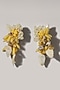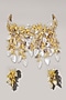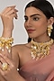 Featuring a yellow choker necklace studded with shell, stones, and crystals, set in mixed metal. It is paired with a matching pair of earrings, bracelet, and ring.