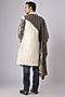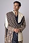 Featuring a blue sherwani in georgette base with an attached drape. It is paired with a satin cowl draped kurta and straight pants. Style it with polished brown loafers, a sleek watch and a subtle brooch to highlight the intricate artwork without overpowering it, ideal for weddings, sangeet nights or festive celebrations.