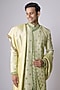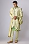 Green Raw Silk Cutdana Hand Embroidered Sherwani Set