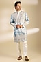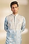 Featuring a light powder blue kurta in satin base with hand embroidery. It is paired with ivory crepe pants. Perfect for festive gatherings, wedding or engagement ceremonies, exuding charm and elegance.