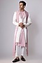Featuring a white sherwani in silk satin base with swarovski embroidery. It is paired with a satin kurta, silk satin pants and a satin dupatta. Style it with a pair of loafers and a bracelet for a wedding, sangeet or engagement ceremony.