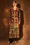 Featuring a black jacket in pure silk base with patch work. Accentuate it with pants, zircon or swarovski jewellery and block heels a wedding or sangeet ceremony.