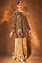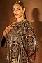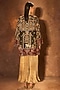 Featuring a black jacket in silk base with zardosi embroidery and velvet border. Accentuate it with pants, zircon or swarovski jewellery and block heels festive celebrations or sangeet ceremony.