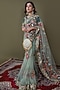 Grass Green Net Thread Embroidered Kalidar Saree Set