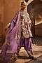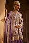 Featuring an ivory kalidar choga kurta in crepe base with tilla embroidery. It is paired with mauve upada silk salwar pants and a crushed lame dupatta. Style this designer set with meenakari earrings, kolhapuri block heels and a potli bag, perfect for festive occasions, sangeet or pre-wedding ceremony.