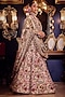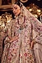 Dareaab by Sonia K Mahajan showcases an ivory and gold lehenga in silk base adorned with zardosi and kalamkari embroidery. It is paired with an embroidered blouse and a dupatta. Style this designer lehenga with meenakari jewellery, floral hairdo, a potli bag and block heels, perfect for a wedding or engagement ceremony.