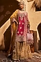 Featuring a pink straight kurta in upada silk base with zardosi, dabka and tilla embroidery. It is paired with mustard yellow georgette gharara pants and a dupatta. Style this designer set with meenakari earrings, kolhapuri block heels and a potli bag, perfect for festive occasions, sangeet or haldi ceremony.