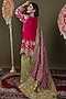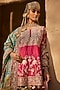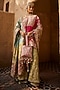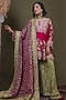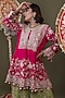 Featuring a pink short choga kurta in upada silk base with tilla embroidery. It is paired with parrot green georgette gharara pants and a dupatta. Style this designer set with meenakari earrings, kolhapuri block heels and a potli bag, perfect for festive occasions, sangeet or mehendi ceremony.