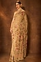 Peach & Lime Georgette Zardosi Embroidered Saree