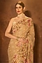 Featuring a peach and lime saree in georgette base with zardosi embroidery and an attached blouse. Accentuate it with polki jewellery, embellished heels and a clutch for a sangeet or wedding ceremony.