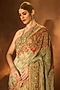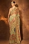 Featuring a pistachio saree in georgette base with zardosi embroidery and an attached blouse. Accentuate it with polki jewellery, embellished heels and a clutch for a sangeet or wedding ceremony.