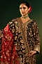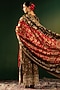 Featuring a red and black shawl in silk base with thread and zardosi embroidery. Style it over a kurta set, kundan polki jewellery and heels for a festive ceremony or pre-wedding functions.