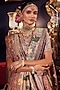 Dareaab by Sonia K Mahajan showcases a salmon pink lehenga in silk base adorned with delicate thread and kalamkari embroidery. It is paired with an embroidered blouse and a dupatta. Style this designer lehenga with meenakari jewellery, floral hairdo, a potli bag and block heels, perfect for a wedding or engagement ceremony.
