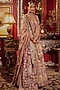 Dareaab by Sonia K Mahajan showcases a salmon pink lehenga in silk base adorned with delicate thread and kalamkari embroidery. It is paired with an embroidered blouse and a dupatta. Style this designer lehenga with meenakari jewellery, floral hairdo, a potli bag and block heels, perfect for a wedding or engagement ceremony.