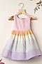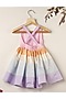 Featuring a multi-colored rainbow dress for girls in cotton base with cross back detailing. Accessorize it with matching hair accessories and sandals for a stylish ensemble, ideal for any festive occasion or birthday party.