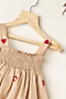 Featuring a nude dress for girls in cotton base with heart hand embroidery. Accessorize it with matching hair accessories and sandals for a stylish ensemble, ideal for any festive occasion or birthday party.