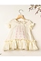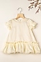Featuring an off-white dress for girls in cotton base with lace detailing. Accessorize it with matching hair accessories and sandals for a stylish ensemble, ideal for any festive occasion or birthday party.