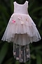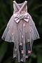 Featuring a peach pink mini dress in net and satin base with hand embroidery.