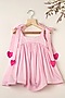Featuring a pink dress for girls in cotton base with heart detailing. Accessorize it with matching hair accessories and sandals for a stylish ensemble, ideal for any festive occasion or birthday party.