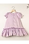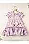 Featuring a purple dress for girls in cotton base with lace detailing. Accessorize it with matching hair accessories and sandals for a stylish ensemble, ideal for any festive occasion or birthday party.