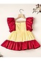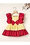 Featuring a yellow and red ruffled dress for girls in cotton base. Accessorize it with matching hair accessories and sandals for a stylish ensemble, ideal for any festive occasion or birthday party.