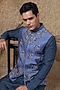 Blue Cotton Silk Hand Embroidered Nehru Jacket Set
