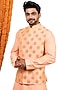 Peach Kurta Set With Hand Embroidered Bundi Jacket