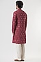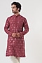 Featuring a bright maroon kurta in georgette base with chikankari, thread, and sequins embroidery. It is paired with contrasting white pants.