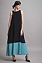 Featuring a black A-line maxi dress in polyester base with contrast panel and color blocking.