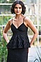 Featuring a black strappy peplum top in recycled polyester base with a V-neckline, spaghetti straps, scalloped hem and cutwork embroidery. It is paired with a midi skirt. Style it with minimal jewellery, heels and a clutch for an elegant look, perfect for cocktail evenings, receptions or formal gatherings.