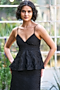 Black Recycled Polyester Strappy Peplum Top