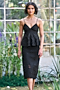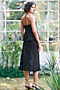 Featuring a black strappy peplum top in recycled polyester base with a V-neckline, spaghetti straps, scalloped hem and cutwork embroidery. Style it with a skirt, minimal jewellery, heels and a clutch for an elegant look, perfect for cocktail evenings, receptions or formal gatherings.