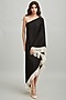 Featuring a black one-shoulder maxi dress in viscose base with a contrast off-white fringe.