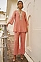 Featuring blush pink straight-cut pants in silk, lurex, cotton and crinkled stripe tissue base with side pockets. Accentuate it with top, hoop earrings and block heels for an evening or festive look.