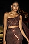 Featuring a metallic chocolate brown one-shoulder bandeau top in recycled polyester base with asymmetric panel detail. Accentuate it with a skirt, hoop earrings and block heels for gala events or cocktail soirees.