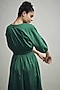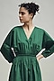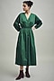 Featuring an emerald green wrap-yoke midi dress in cotton base with a side slit and elasticated waist.