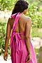 Featuring a fuchsia midi dress in organic cotton base with tie-neck halter and knot detail. Accentuate with dangler earrings and heels for special occasions.