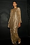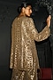 Featuring a gold top in organic viscose base with sequins embroidery and side slits. Accentuate it with pants, hoop earrings and block heels for gala events or cocktail soirees.