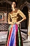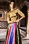 Featuring a gold crop top in banarasi tissue, zari and silk base with zipper detail. Accentuate it with a skirt, drop earrings and block heels for a stylish ensemble, ideal for a festive look.