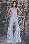 Grey Recycled Polyester Lace & Metallic Thread Embroidered Flared Pants