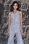 Featuring a grey sleeveless peplum top in recycled polyester base with metallic lace, metallic thread and floral embroidery, including side slit, scalloped hem, wide shoulder straps, round back and a v-neck. Accentuate it with pants, statement earrings and heels for an evening soirees.