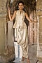 Featuring an ivory textured waistcoat in brocade and recycled polyester base with a shawl collar. It is paired with a draped skirt having back slit detail. Accentuate it with drop earrings and block heels for a stylish ensemble, ideal for evening soirees.