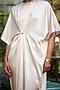 Ivory Satin Pleated Draped Kaftan Dress