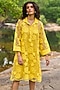 Featuring a lemon yellow lace dress in recycled polyester base with shirt collar, side slit and embroidery. It is paired with a slip. Accentuate with dangler earrings and heels for special occasions.