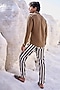 Featuring black and white pants in satin base with stripes, including side and back pockets. This contains one piece only.