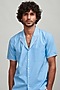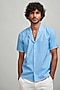 Featuring a blue shirt in cotton poplin base with contrast multi-colored hand-applied blanket stitched cuban collar and sleeve cuff. This contains only one piece.